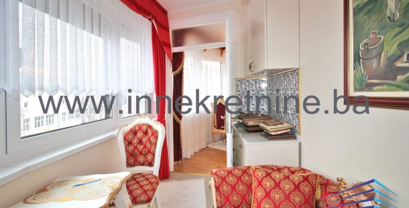Centralno gradsko grijanje sa kalorimetrom. Vanjska petokomorna PVC slotarija sa roletnama. Unutrašnja drvena stolarija. Parket u dnevnom boravku, trpezariji, spavaćoj sobi i predsoblju. Keramičke ploćice u kuhinji, kupatilu i zatvorenoj lođi. Automatski osigurači. Internet. Interfon. Telefon. Kablovska TV. Lift.